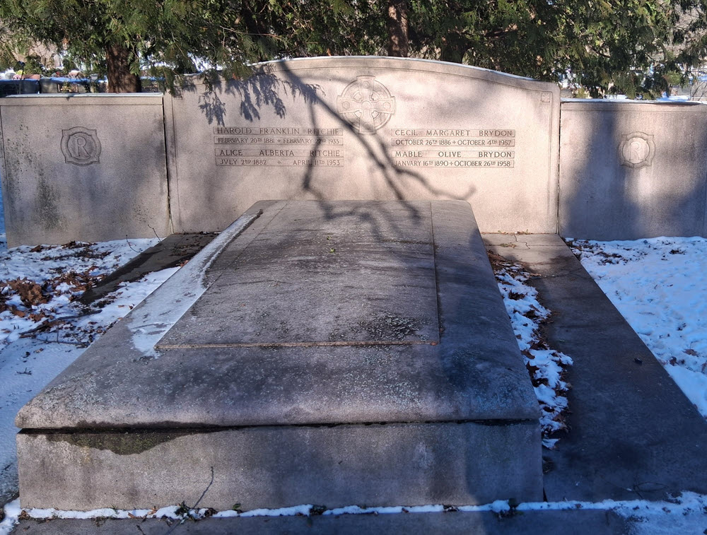 I was walking at my local cemetery at the beginning of December. My eyes resed on a pair of fancy gravestones, and I recognized an old friend: Harold Franklin Ritchie.