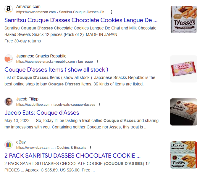 Dear “Jacob Nation”: we are now the #6 organic result on Google for Coque D’Asses. I’m on the verge of making a fortune as a phallic food influencer (phood inphluencer?) through my Jacob Eats series. Several Splenda Daddies have already gotten in touch with me. They’ve offered to pay me for custom videos where I eat bananas, kielbasa, freezie pops, pixie stix, individual spaghetti strands, twizzlers, English cucumbers and mini-baguettes. Wish me luck! 🖤