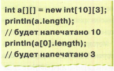 Элементы массива пронумерованы с нуля. Корректность индексации массива проверяется во время исполнения программы, и если произошел выход за границы – возбуждается исключение. С точки зрения языка Java, массивы – это объекты предопределенного класса с единственным методом length, служащим для определения длины: