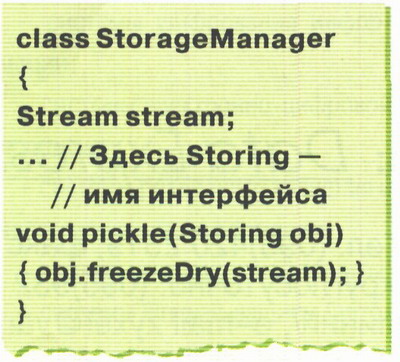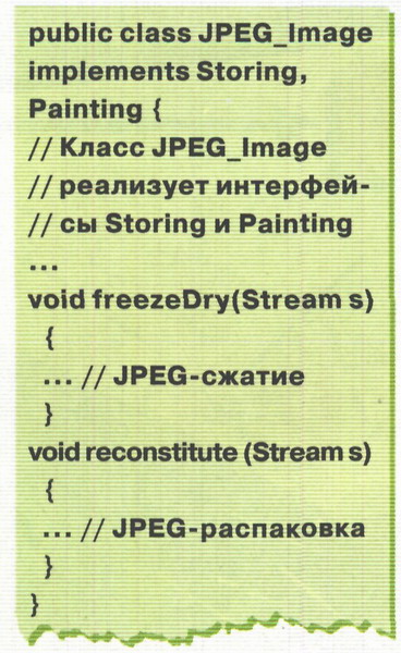 экземпляр любого класса, реализующего указанный интерфейс. Очевидно, что с помощью аппарата интерфейсов можно легко реализовать все то, для чего во многих библиотеках на Си++ (например Borland OWL) используется перекрестное наследование.