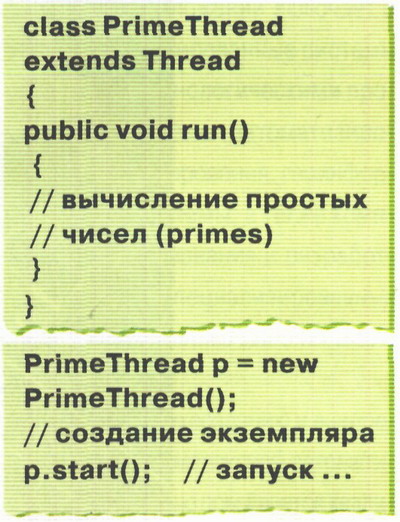 Приведенные ниже примеры иллюстрируют описание класса, вычисляющего простые числа, создание и запуск соответствуюшего объекта: