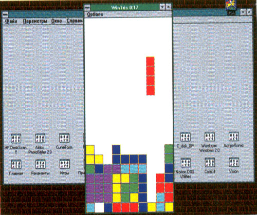 12.02.1993. WINTRIS. Gary Kipnis. Когда получаешь новую игру, обычно ждешь неожиданностей. К семейству тетрисовых это относится в первую очередь – таких игр уже десятки, причем при всем разнообразии многие интересны. Когда я получил творение Гэри Кипниса и прочел, что ему еще хочется получить за него от каждого пользователя доллариев этак по 15, то раскатал губы -наверняка уж что-то новое. АН фигушки! Самый обычный "Тетрис". То есть самый-самый обычный. Но под Windows. Да, до такого мог додуматься только гейтсовский выкормыш, которому ничего нового в голову не приходит принципиально, а вот деньги он ох как любит. Да даже если б я был миллиардером – не послал бы!