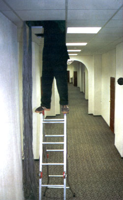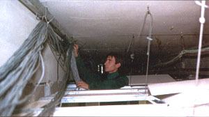 И закипела работа. Появилось у нас в офисе множество "рыцарей сверла и отвертки" в зеленых комбинезонах с надписью "АйТи" на спине и различным инструментом в руках. От мотков кабеля стало просто некуда ступить, розетки можно было считать только мешками, не приделанные еще к стенам короба то и дело норовили упасть на голову, со всех сторон что-то визжало, сверлилось или прикручивалось, а в довершение всего и потолок над головой разобрали.
