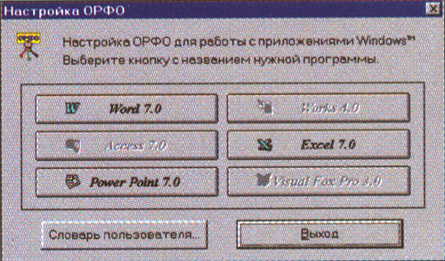 "Орфо 4.0" подобно101 "Прописи" готово работать, как и прежде,102 со всеми поддерживаемыми им шестнадцатиразрядными приложениями, если они работают под Windows 95. Но имеет ли это смысл, если есть "Орфо 95"?