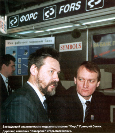 Весьма специфическое отношение к Западу в компании "Инверсия" (ее штат составляет 100 человек). По заявлению ее директора Игоря Возгилевича, у них "никогда не было ни одного прайс-листа с указанием долларовых цен – только рублевые". Хотя кризис сказался и на клиентах "Инверсии", в настоящее время у компании есть партнеры во многих регионах: и в Находке, и в Калининграде, и во Владикавказе. Всего пользователями продуктов компании на территории бывшего СССР являются 500 коммерческих банков. "Инверсия" предлагает трехстепенную систему развития автоматизации банка, три программных комплекса: "АСУ КОМБАНК", "БАНК 2000", версия на Oracle. Переходя от одного этапа автоматизации к другому, банку надо лишь доплатить необходимую сумму за следующую версию (своеобразный upgrade).