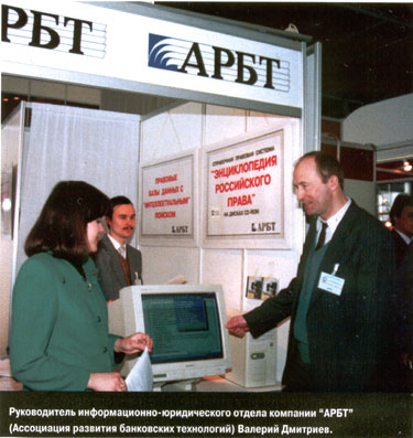 Как считает Владимир Градсков, банковский кризис вынуждает банки ограничиваться щитовой и печатной рекламой и не участвовать в выставках. Если в прежние годы здесь можно было насчитать до 10-15 банковских стендов, то на нынешней экспозиции таковой нашелся лишь один. Правда, в конференции "Автоматизация банковской деятельности: проблемы и решения" приняли участие представители 65 банков из России и стран бывшего СССР: здесь стоит отметить выступление представителя Центрального банка РФ, рассказавшего о политике ЦБ в области автоматизации межбанковских расчетов, и сотрудника Госстандарта РФ, поведавшего собравшимся о концепции создания системы стандартизации и метрологического обеспечения банковской деятельности и о ходе работ в этой сфере.