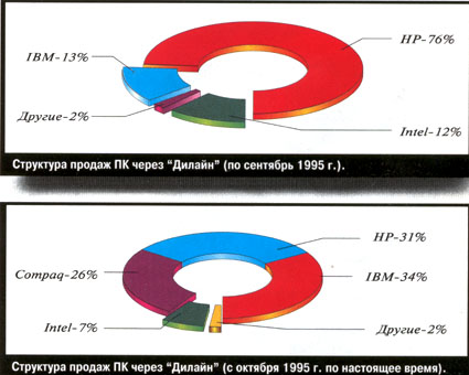 Осенью 1995 года и сама IBM изменила стратегию прямых продаж в России, "взявшись" за дистрибьюторов. Хорошим маркетинговым ходом оказалась разработка и продвижение "дешевого brand" IBM PC 130. Модель оказалась очень популярной среди дилеров, a IBM подогревала их интерес, установив специальные цены. После подведения итогов пять партнеров "Дилайн" получили премии от IBM – ваучеры на заказ до 7000 долларов "Год назад все ставили знак равенства между понятиями "компьютер IBM" и "дорогой компьютер", – отметила Ольга Наумова, начальник отдела маркетинга. – Мы боролись за то, чтобы знак равенства пропал, и своего добились объем продаж техники IBM вырос с 13% в сентябре до 34% в январе этого года". Кроме того, IBM авторизовала еще 25 дилеров "Дилайна" "Мы хотели видеть в числе "наших' компаний всех, кто хочет продавать технику IBM, – посетовал Сергей Федосеев, – и предложили "Дилайну" список из пятидесяти компаний. Но по финансовым соображениям список был сокращен, ведь "Дилайн" делает авторизованным дилерам специальные скидки".