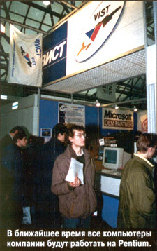 Представитель "Виста" г-н Беспалов сообщил, что в ближайшие два-три месяца компьютеры на базе 486-го процессора будут сняты с производства, и все предлагаемые компанией ПК станут оснащаться процессорами Pentium. На все компьютеры предустанавливается Windows 95, и, возможно, будет предустанавливаться OS/2. Г-н Беспалов заявил, что цена базовых моделей, планируемых к реализации в салонах "Партии", не поднимется по сравнению с аналогичными моделями, продаваемыми в собственных магазинах "Виста".