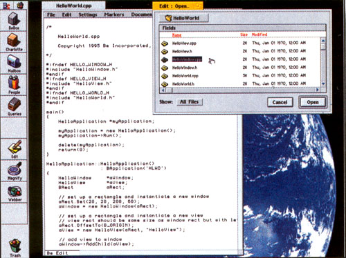 Заставка: "В октябре 1995 года на конференции "Agenda-96" калифорнийская компания Be Inc. представила новую аппаратную платформу Be и разработанную специально для нее операционную систему BeOS..."