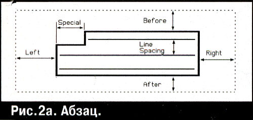 Формат абзаца поясняет схема на рис. 2а.