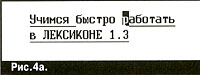 Обратим внимание сначала на шрифт набираемого текста. Исходная ситуация – как на рис.3. Курсор уже находится в необходимой позиции. Результат представлен на рис.4а ("Лексикон") и рис.46 (Word). Здесь проявляется отличие при работе в этих текстовых процессорах. В "Лексиконе", прежде чем вставить текст, надо установить нужный текущий шрифт. Word это делает сам, и вставляемый текст будет выглядеть точно так же, как и символ, стоящий слева от курсора.