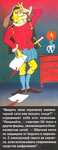 Представляете, что будет? Принимаю я материал у корреспондента и сразу "выдаю" ему на карточку гонорар с другой карточки, на которой хранится редакционный бюджет. Причем все эти транзакции автоматически документируемы и подконтрольны, а простота и удобство – как при наличных расчетах. Весь вопрос в том, кто возьмется гарантировать такие карточки (а иначе как им верить). Да и банки не сразу решатся выпустить из лап сферу расчетов. Они, конечно, предпочли бы, чтобы мать, посылая ребенка в магазин, переводила небольшую сумму со своей на его карточку через компьютерную сеть и расчетный центр, а вернувшись, крошка таким же порядком отдавал сдачу. Но мы их дожмем.