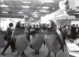 Крупные компьютерные компании устанавливают на углу своего стенда экран, ставят перед ним стулья и проводят выступления артистов в промежутках между лекциями и презентациями. Поскольку многие из таких компаний имеют несколько городков в разных павильонах, шоумены переходят с площадки на площадку и, вероятно, неплохо зарабатывают за эту безумную неделю.