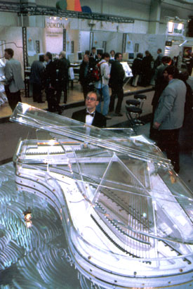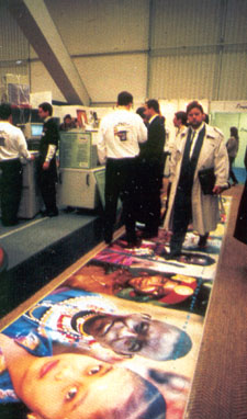 Прежде всего, там была большая экспозиция офисных технологий, более напоминавшая выставку полиграфического оборудования. Непохоже, чтобы идея электронного офиса в ближайшее время победила. Вероятно, чтобы облегчить задачу обозревателям, офисные технологии переходили в информационные, начинавшиеся в том же огромном павильоне. По изменению положения границы между ними год от года можно было бы судить, чья берет.