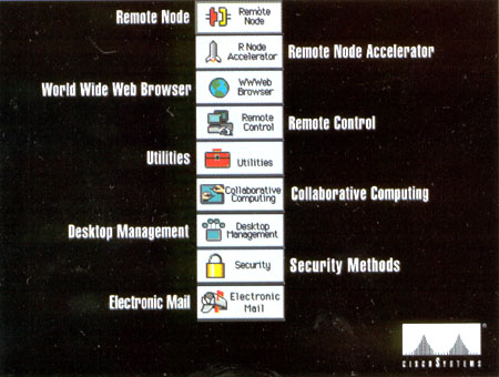 В пакет входит программа кэширования обменов, позволяющая сэкономить производительность канала и ускорить работу в 2-6 раз. Администратор сделает с вами все то же самое, что в локальной сети, вплоть до того, что перехватит вашу клавиатуру и экран. Начальство может спать спокойно: "киска" поставляет полный набор защитных приспособлений. Безопасности ее учить не надо, она сама кого хочешь научит. Плюс, как и было сказано, браузер Web от NetScape, электропочта и все интернетовские удовольствия за счет вашего нанимателя.