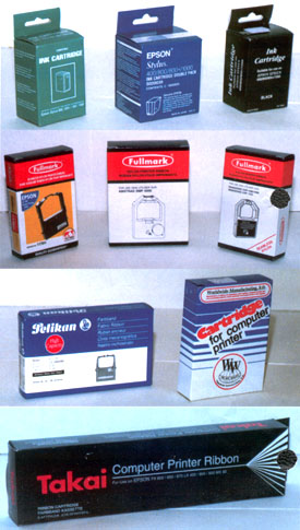 По картриджам к матричным принтерам безусловным лидером рынка является фирма Fullmark. Продавцы отдают им предпочтение перед сделанными в Сингапуре фирмой Takai. Последними занимается фирма Agio. Есть еще картриджи Worldwide Manufacturing, E.D. По слухам, производятся они на Украине по лицензии. Кстати, продаваемые в Москве картриджи под торговой маркой фирмы Pelikan на самом деле собираются российской фирмой где-то в районе города Дубны. Настоящий Pelikan должен стоить процентов на 70-100 подороже.