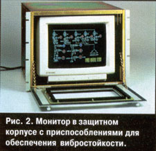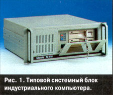 На нашем рынке производители промышленных компьютеров представлены такими фирмами, как Advantech, ICP, Intecolor, Texas Micro. На рис. 1 представлен типовой системный блок промышленного компьютера, а на рис. 2-монитор, помещенный в защитный корпус с приспособлениями виброизоляции. На рис. 3 можно видеть типичную индустриальную рабочую станцию.