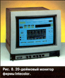 Некоторые фирмы разрабатывают для систем автоматизации специальные дисплеи. Например, фирма Intecolor изготавливает мониторы с диагональю в 20 дюймов, которые выдерживают удар в 20д и имеют повышенную степень защиты от внешних воздействий (рис. 8). В тех приложениях, где существенны малые габариты изделия, предпочтительны плоские панели на базе жидкокристаллических индикаторов (ЖКИ). В условиях низких температур, как правило, ни ЖКИ, ни ЭЛТ-дисплеи уже не годятся и применяются электролюминесцентные или плазменные дисплеи. При этом диапазон рабочих температур может простираться до -55 °С.
