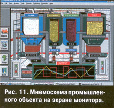 Немного особняком стоит программное обеспечение, предназначенное для эксплуатации на верхнем уровне систем автоматизации, например, в диспетчерских системах электростанций, пультах управления сложными агрегатами и т.д. Главными функциями таких SCADA-программ (Supervisor Control And Data Acquisition) являются отображение технологического процесса в виде мнемосхем, сигнализация об аварийных ситуациях, ведение системного журнала, обеспечение общего управления процессом со стороны оператора и т.п. Многие системные интеграторы или подразделения АСУ крупных предприятий, как правило, имеют свои наработки в этой области. В то же время есть фирмы, специализирующиеся на разработке универсальных SCADA-программ, таких как Genesis (Iconics), FixDmacs (Intellution), InTouch (Wonderware). Из отечественных разработок хотелось бы отметить программу Trace Mode (Adastra Research Group). Ha рис. 11 представлен экран с мнемосхемой объекта, реализованный в системе Genesis.