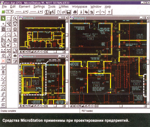 Основное назначение продуктов MicroStation фирмы Bentley Systems – выполнение высокопрофессиональных проектных рабств машиностроении транспорте электронике геодезии и картографии архитектуре и управлении. Продукты MicroStation реализованы для платформ Intel PC Apple PowerMac IBM Power PC и RS/6000, SPARC Station DEC Alpha HP 9000 Inergraph Clipper Indigo SGI и могут использоваться в средах DOS, Windows (3.х 95 и NT) OS/2 Warp и UNIX, что обеспечивает их высокую мобильность. В гетерогенной среде обеспечен прямой обмен файлами между платформами в бинарном формате. Реализован режим групповой обработки данных за счет средств поддержки сетевого взаимодействия, общих библиотек элементов и ссылочных файлов. Наряду с созданием собственных баз данных обеспечен интерфейс с СУБД xBase, Oracle и Informix для хранения атрибутов проектируемых объектов. Разработан интерфейс для передачи данных в другие системы CAD. Версия MicroStation 95 предоставляет возможности разработки пользовательских приложении на расширении C++ – языке MDL (MicroStation Development Language) едином для всех продуктов MicroStation. В настоящее время создано уже более 1500 MDL приложении для различных видов проектных работ.