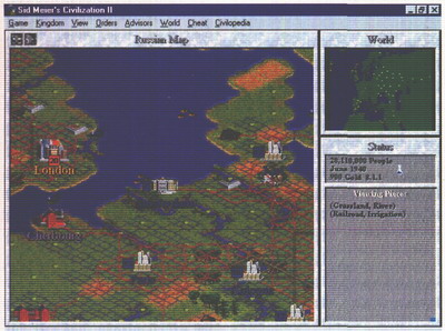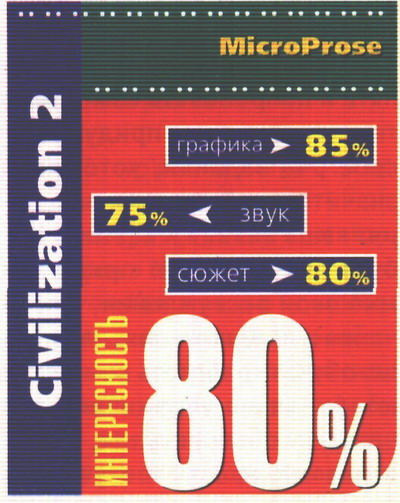 Игроков, ожидавших чего-то сногсшибательного, просьба не беспокоиться: Civ 2 рассчитана на "идейных борцов" и является всего лишь переделкой старой концепции под новый engine (с вкраплением незначительных поправок). Отсюда и более скромные системные требования: 486, Win З.Х/Win 95, CD-RОМ, VGA, 4 Мбайт RAM.