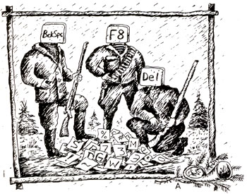 Мнение Стивена Кинга. Каждый раз после нажатия клавиши Del вы выпускаете из курсора на свободу крохотного монстра, который разрывает бедные, ничего не ожидающие символы на мелкие куски, пьет их кровушку, затем пожирает их, обгладывая кости. Хаа-хаа-хаа!!!
