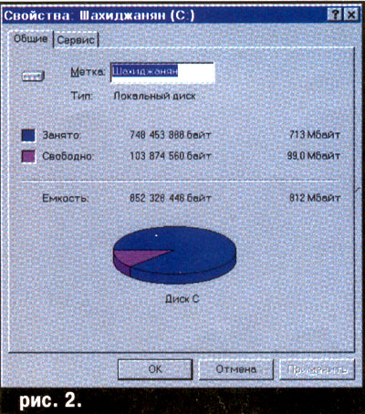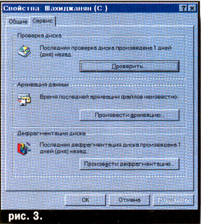 Вам нужно мышкой выбрать в этом контекстном меню пункт "свойства", и появится окно "Свойства диска", где будет два раздела – общие и сервис: (см. рис. 2) и там вызывать сервис (см. рис. 3).
