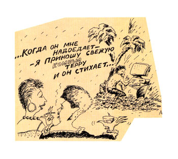– В самый неподходящий момент задайте ему тщательно заученный вопрос типа "Любимый, а хаевая дискета – это хорошая или плохая?" или "Дорогой, а что бы ты сделал, если бы тебе дали по фрекам?" Настоящий программист разрешит такие вопросы в любом состоянии – вы же значительно подниметесь в его глазах.