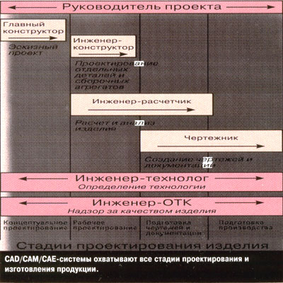 Как уже было сказано, одним из главных преимуществ систем CAD/ САМ/САЕ третьего поколения заявлена возможность совмещения во времени большинства стадий автоматизированного проектирования и изготовления изделий, называемая параллельным проектированием (concurrent engineering). Под этим подразумевается одновременная работа коллектива разных специалистов (конструкторов, расчетчиков, технологов и др.) над одним изделием. Однако к этому следует относиться с осторожностью, ибо в традиционном цикле "проектирование-анализ-подготовка-изготовление" всегда найдутся работы, принципиально не допускающие совмещения во времени с другими. Кроме того, организация параллельной коллективной работы в системе CAD/CAM/CAE должна поддерживаться эффективными программными и техническими средствами. Это дает основание считать, что параллельное проектирование в системах CAD/CAM/ САЕ будет практически реализоваться по мере их совершенствования и разработки новых подходов к организации цикла "проектирование-изготовление".