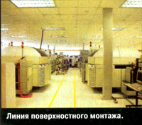 Вернемся на завод. Участок сборки плат много меньше мониторного. Линии там короткие -метров двадцать – и более похожи на единый агрегат. Платы собирают по технологии монтажа на поверхности. Компоненты в этом случае не имеют выводов. Все добро, грубо говоря, просто раскладывается по плате, присыпанной паяльным порошком, а потом едет в печку, где и спаивается.