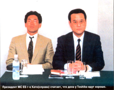 Затем выступил специально прилетевший в Москву г-н Като (Kato), главный менеджер дивизиона PC в отделении компании Toshiba по Азии, СНГ, Среднему Востоку и Африке. Его доклад был посвящен стратегии компании и намеченным ею целям на ближайшее будущее. Г-н Като привел данные IDC, из которых следовало, что по результатам 1995 года Toshiba, выпустив 1,4 миллиона ноутбуков на сумму 4,2 миллиарда долларов, заняла первое место на мировом рынке ноутбуков (15,9% от общего объема продаж), обогнав фирму NEC. Последняя, если бы не сумела захватить японский рынок, оказалась бы за пределами первой десятки лидеров (но она его сумела-таки захватить). Toshiba также стала "номер 1" и на американском рынке (20,1%).