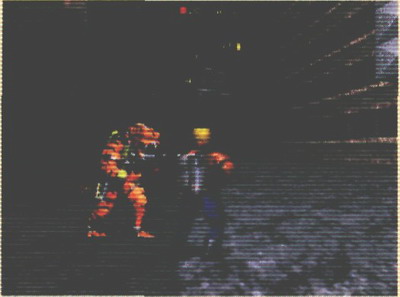 Начнем по порядку: графика. Duke держит разрешения 320x200, 640x480 и 800x600, причем все они достаточно быстрые (конечно, все познается в сравнении, но Р100 и 16 Мбайт памяти вам хватит за глаза). Графический engine во многом является аналогом DООМ'овского, хотя и выглядит более презентабельно в высоком разрешении. В отличие от DOOM'a здесь удачно реализована идея многоуровневых (многоэтажных, если первый термин несколько необычен) этапов: игрок оказывается не на идеально плоской поверхности, а на местности, довольно реально реализованной, с возможностью плавания под водой и полетов с помощью jetpack'a.