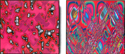 В предыдущем разделе мы обращались к фазным попыткам программировать искусство. Клеточные автоматы – очень интересный инструмент для соответствующих работ в области музыки, скульптуры и живописи. Читатель сам может вообразить, что получится в случае двумерного и даже трехмерного автомата с 256 состояниями (цветами) клеток. Но как говорится, лучше один раз увидеть, так что просто взгляните на соответствующие цветные иллюстрации.