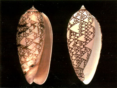 На последней иллюстрации слева вы видите красивую раковину морского моллюска; справа – она же, но уже сгенерированная с помощью клеточного автомата.