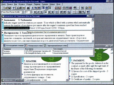 Stylus 3.0 может работать с документами самых популярных форматов – Word для Windows 6.0, 7.0, Word для DOS, Write, HTML, ASCII. При сохранении перевода (или файла-оригинала) можно задать любой формат документа или конвертировать файл с полным сохранением форматирования.