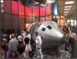 "CeBIT HOME" – это и праздник, и шоу, и бизнес. Для привлечения внимания многотысячной толпы посетителей все средства хороши. На одних стендах посетителям раздавали маленькие подарки, сувениры или угощение, на других – выступали певцы, музыканты или эстрадные артисты, а на этом стенде поставили макет космического корабля "Аполло" и переодели персонал в костюмы астронавтов.