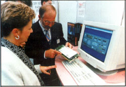 Вот так мы плавно добрались до собственно экспонатов "CeBIT НОМЕ'96". Пытаться перечислять, пусть даже только самые выдающиеся достижения высоких технологий, не стоит. Их было показано немало, небольшую часть из них вы можете видеть на фотографиях.