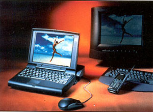 Главной новинкой компании Toshiba на "CeBIT НОМЕ", привлекавшей целые толпы любопытных, был мини-ноутбук Libretto 20, способный уместиться в кармане пиджака: DX4/ 75, 8 Мбайт памяти, 270 Мбайт жесткого диска, инфракрасный порт, цветная активная матрица 6,1 дюйма. Литиевой батареи хватает на 2-3 часа автономной работы. И все это чудо весит лишь 840 граммов!