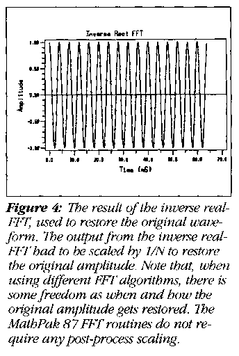 For purposes of timing comparison, I also implemented a host-resident C program that calls an FFT routine optimized for the 80x87. This routine comes from Precision Plus' MathPak87 library. The driving source file is called ddj_mp87.c and is shown in Listing Two (page 90).