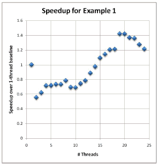 Let's find out. When I ran the code in Example 1 with values of P from 1 to 24 on a 24-core machine, I got the results shown in Figure 1.