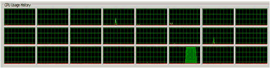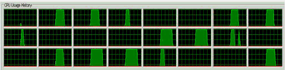 Now that we've confirmed the culprit in Example 1 was memory contention due to false sharing on the result array, this helps clear up the mystery of why the cores appeared pegged in the CPU monitor (Figure 3) when they were actually not doing as much work: Many CPU monitors, like this one, count the time a core is waiting for cache and memory as part of its "busy" time. After all, the core is executing an instruction; it just happens to be an expensive memory fetch instruction. That explains why a core can appear to be fully utilized when it's actually only doing useful computation work a fraction of the time; it's spending the rest of its time just waiting for memory.