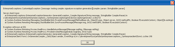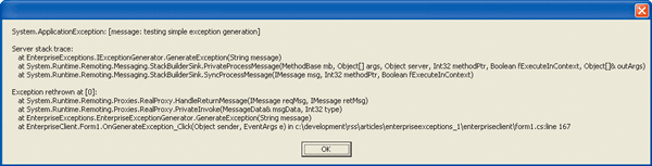 Let's go back to the remoting solution I used previously. If you examine the client code that calls the GenerateException, you'll see that it simply instantiates the ExceptionGenerator class, then calls the method shown here: