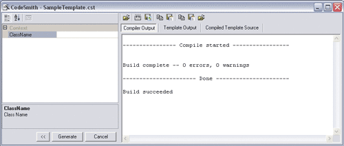 This property declaration will make the ClassName property appear in the CodeSmith property window so that it can be specified when the template is run. The next step is to actually build the body of the template, which is very similar to coding with ASP.NET. You can see the body of the template in Figure 3. [ Editor's Update - 6/16/2004: The code in Figure 3 has been updated to be safe for multithreaded operations.]