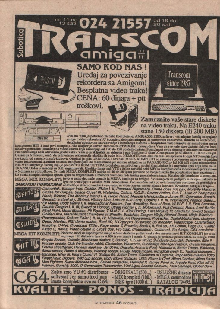 Here is one bootleg advert from the 90-s. People were selling stuffed VHS tapes for Amiga, same way as C64’s turbo tape compilations on audio cassettes. 200 MB on 4 hour tape, 150 disks. Never tried it, had no Amiga nor C64 at the time. But remembered it as an extremely awesome thing.