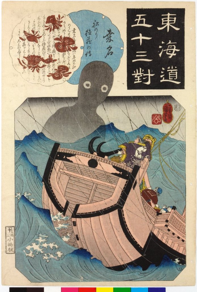 Text source. You can see Konoike’s template drawing on the left, and the final table runner on the right. For more about the dissection table and how it integrated into the leper colony it is in, run this interesting travel post through a translation.
