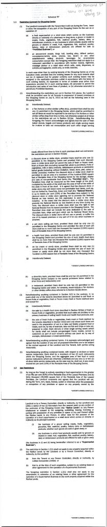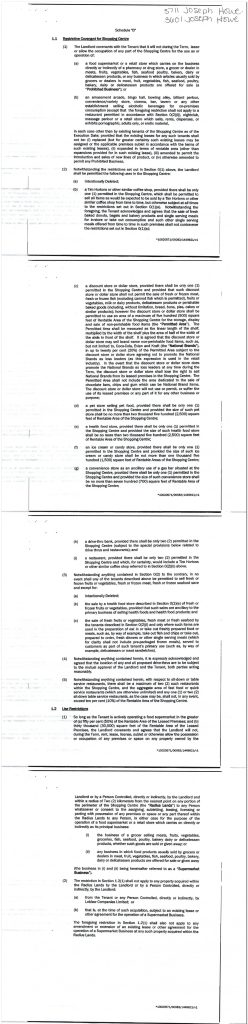 This is a lease agreement for a shopping plaza, where Metro put in a “Food Basics” grocery. It forbids other tenants from selling foods while the tenancy is active: