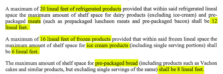 What’s interesting is that the lease outlines in minute detail what foods, and how much of each, a potential Shoppers Drug Mart is allowed to sell. There are strict limits on how much bread can be sold. In what other context is one business allowed to control another business’ operations in such detail? Is this what you would call free-market competition?