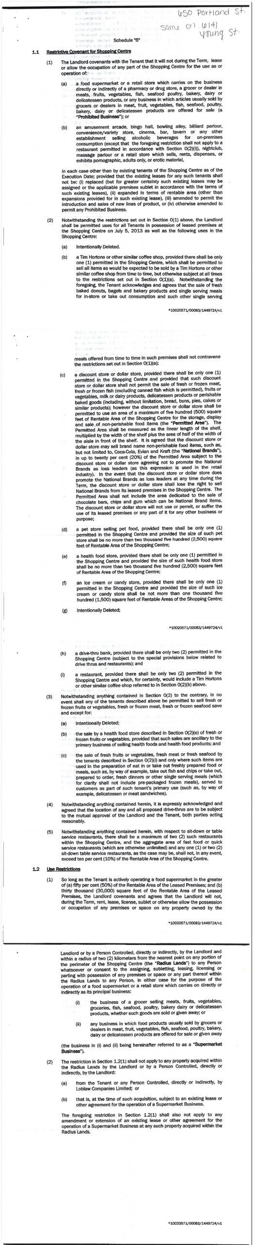 Both 650 Portland and 6141 Young are owned by Choice Properties REIT, and this covenant is an example of the kind of deal Loblaws signs with itself when it rents in a CP REIT mall.
