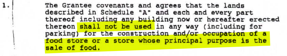This one is a blanket 20 yearblock on using the land for a grocery or a drugstore. I believe this covenant was put in place by Sobeys.