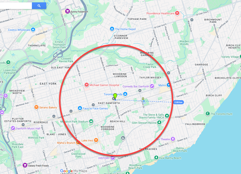 * Actually, I will owe you an update: CP REIT discloses all their properties, and I will check whether any major ones are within that radius. The adjoining ones on Danforth Ave. are definitely owned by CP REIT.